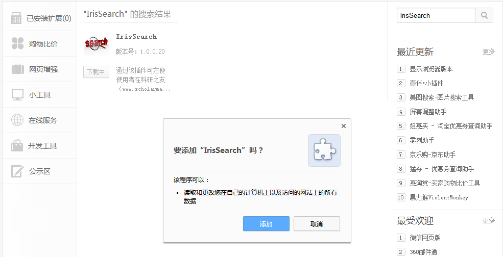 (2) 点击安装检索插件按钮,跳转到360组件下载商店。
