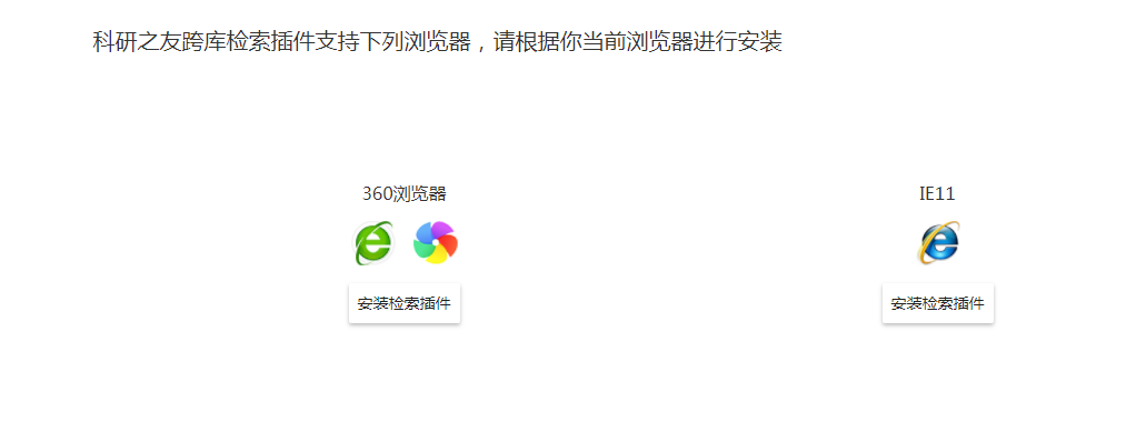 目前科研之友跨库检索插件仅支持:IE11,360浏览器